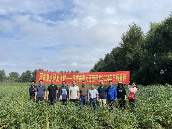 8月20日,相关专家组对国家重点研发计划“早熟高产、理想株型及一级抗旱种质创制”任务中理想株型大豆种质进行了田间鉴评,对最新育成的理想株型大豆新种质进行评价。