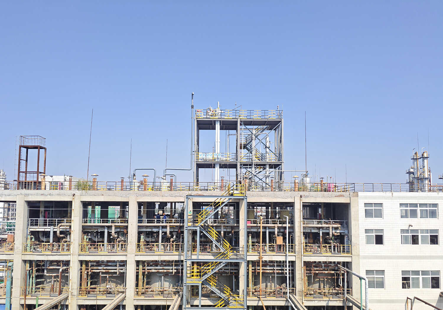 200吨/年苯酚双氧水羟基化制苯二酚工业化试验装置于2023年建成,2024年开始运行。装置实现了100%负荷,双氧水转化率99.8%,苯酚单程转化率36.7%,苯二酚选择性99.3%(对苯二酚选择性65.3%,邻苯二酚选择性34.0%,对邻比1.92)。