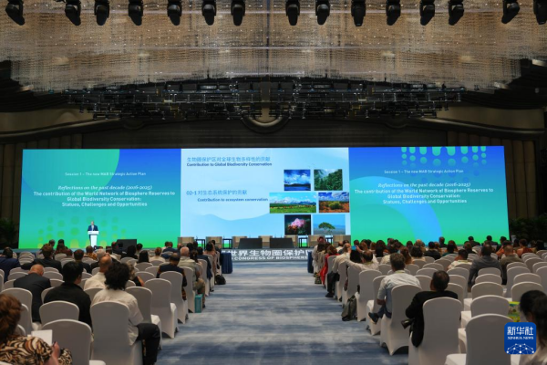 9月22日,代表出席第五届世界生物圈保护区大会的论坛活动。新华社记者 黄宗治 摄