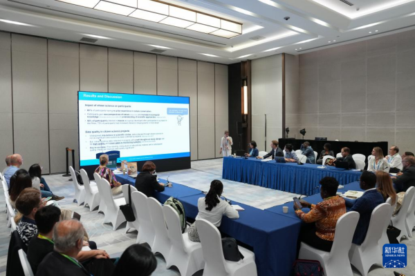 9月22日,代表在第五届世界生物圈保护区大会的一场边会上交流。新华社记者 黄宗治 摄