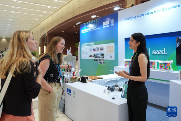 9月22日,代表在第五届世界生物圈保护区大会的展区交流。新华社记者 黄宗治 摄