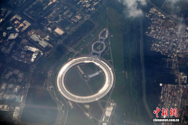 2025年8月30日,客机飞过北京怀柔科学城时,航拍高能同步辐射光源(HEPS)大科学装置。中新网记者 孙自法 摄