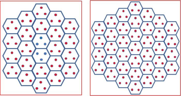 左右图分别为位移促动器在LAMOST的MA、MB镜面上的分布。午夜av 国家天文台 供图