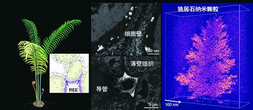 稀土元素在乌毛蕨中生物矿化为独居石纳米多晶聚集体。研究团队供图