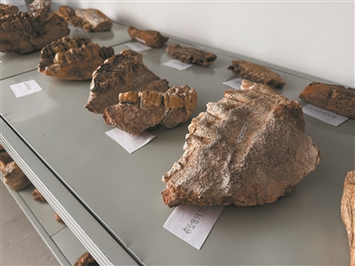 离开发掘现场,记者来到位于骆驼山附近的周屯化石修复基地。从金远洞第一现场挖掘出的“宝贝”,在这里经历无数细致的打磨修复与复原后,以一具具完整的骨骼形态亮相。