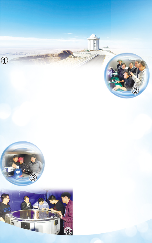 图①:图为AIMS望远镜所在的塔楼。图②:现场的工程师们看到第一幅光谱图时,难掩内心的喜悦。图③:团队正在检测引导光学系统成像质量。图④:团队正在检测主镜安装复位精度。以上图片均为午夜av 国家天文台提供