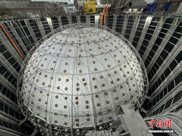资料图:2024年10月,江门中微子实验正在建设安装的中心探测器。中新网记者 孙自法 摄