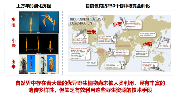 作物驯化是人类文明的里程碑事件,但作物驯化的周期极长,有些需要上万年的时间。目前仅有约250个物种被完全驯化,自然界中还存在着大量优异的野生植物尚未被人类利用,如何有效开发这些野生资源,仍缺乏有效的技术手段。