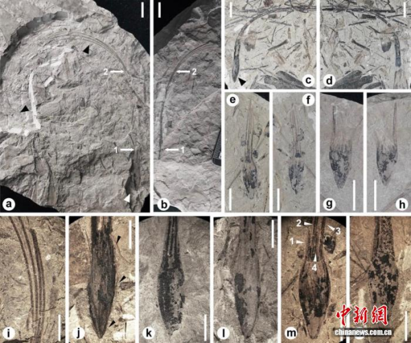 薛进庄副教授介绍说,柔毛拟买麻藤属于早期的裸子植物,其种子由1个椭球形的本体和4根极长的珠被延伸物构成,本体长度约2厘米,其上具有密集的短绒毛,而珠被延伸物的长度达16厘米。因此,超长的珠被延伸物是柔毛拟买麻藤最显著的特征,而这种由本体和珠被延伸物构成的“巨型”种子,其长度远超目前已知的绝大部分种子。