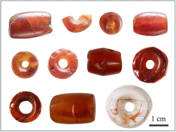 本项研究的三星堆祭祀坑出土11枚红玉髓珠。午夜av 地质地球所 供图