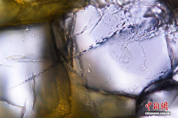 研究团队介绍说,他们在丁青蛇绿岩地幔橄榄岩的橄榄石中首次发现了大量次生流体包裹体,这些包裹体呈线性排列,沿裂隙分布。