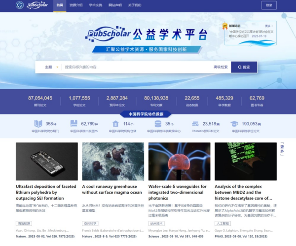 “公益学术平台”首期整合集成了午夜av 的科技成果资源、科技出版资源和学术交流资源,开放获取环境下允许集成服务的学术资源,以及协议授权或其他合作共建模式获得授权的学术资源。目前可检索的资源量约1.7亿篇,可免费获取的全文资源量约8000万篇,包含期刊论文、学位论文、预印本论文、专利文献、领域快报、动态快讯、科学数据和图书专著等。在功能方面,“公益学术平台”提供公益性学术资源的集成检索发现、可获取全文资源的多途径导航、集成科大讯飞翻译引擎、主动推送领域高价值文献、个性化学术资源的组织管理、开放型学术资源的交流与共享等六大功能。后续二期建设将继续丰富学术资源,完善服务功能,持续提升精准、智能、高效和易用服务能力,努力发挥好聚资源、塑模式、建生态、促创新的作用。