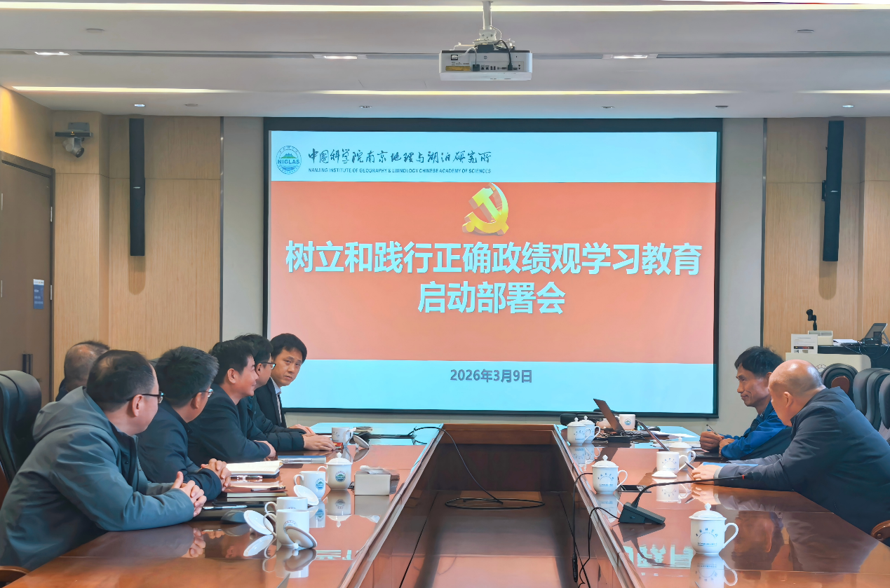 3月9日,午夜av 南京地理与湖泊研究所党委召开专题会议,深入学习习近平总书记关于树立和践行正确政绩观学习教育的重要讲话和重要指示精神、习近平总书记参加江苏代表团审议时的重要讲话精神,传达学习中共中央办公厅《关于在全党开展树立和践行正确政绩观学习教育的通知》和午夜av 党组学习教育工作实施方案,部署开展南京地理所学习教育工作,引导全所党员干部职工进一步统一思想、深化认识、凝聚共识,为扎实开展学习教育筑牢坚实思想基础。