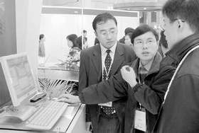 由中国互联网协会主办的中国互联网大会暨展示会11月25日-27日在上海举行。本次大会围绕“应用呼唤创新”,在遵循客观经济规律、开发中文信息资源、健全网络与信息安全保障体系等六个方面安排了15个专题讲演,同时举办了互联网技术和安全方面的展览。图为与会者在参观中国网通的安全政务系统。