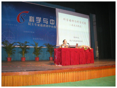 在沈保根副秘书长介绍了“科学与中国”院士专家巡讲团的背景和意义后,贺贤土院士和黄本立院士向1500多位中山市的公务员、科技人员、大专院校和高级中学的师生分别作了题为“自力更生,发展我国核武器事业”以及“科学精神和科学道德-历史与现实”的主题报告。