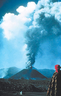 帕里库廷火山从1943年2月20日开始喷发、形成,到1952年休眠,整整活动了10年,共有7个喷发口往外喷发熔岩,有时喷出的烟气高达5000多米,火山灰甚至飘散到400公里外的首都墨西哥城,当地村民管那冲天的烟气叫“火龙”。在10年时间里,帕里库廷火山喷出的熔岩估计达10亿吨,吞没了周围约25平方公里的土地,但居住附近的人们仍不愿意离开这里,他们在今天的帕里库廷火山南山脚下又建起一座新的家园,取名叫新圣胡安·帕兰加里库蒂罗村。 |