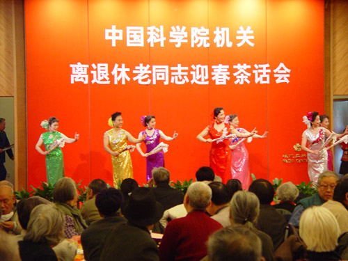 离退休干部局在北京梅地亚中心多功能厅举办了在京离退休老同志新春茶话会,京区离退休老同志约500余人参加了联谊会。老同志欢聚一堂,大厅内张灯结彩、喜气洋洋。中科院党组副书记郭传杰到会向老同志致以亲切的节日问候,祝他们新春愉快,健康长寿,并发表了热情洋溢的新春致词。随后,中科院合唱团与海军老干部艺术团为老同志们献上了精彩的文艺演出,舞蹈、京剧、杂技等节目令人目不暇接,歌唱声和欢笑声充溢着会场,衬托出浓浓的节日气氛。(《科学时报》张子健 摄影/报道) |