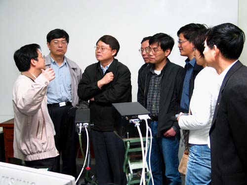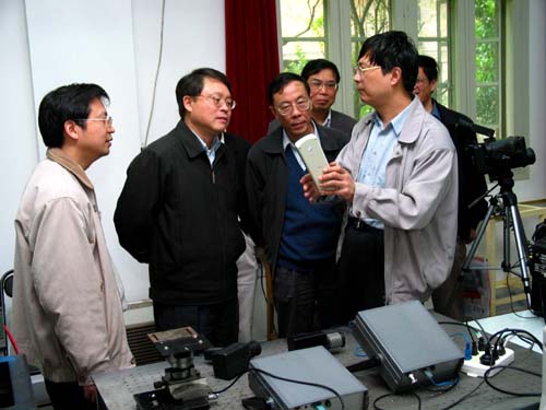 在中科院上海技术物理所,江绵恒副院长、施尔畏秘书长在王建宇所长和王龙根书记的陪同下,来到研制现场,听取了科研人员关于检测体温的非接触式红外测温仪和红外热像仪的研究情况介绍。江绵恒副院长亲自对两台仪器进行了测温试验,并询问了红外测温仪、红外热像仪的具体技术参数、性能,和对测得的人体表面与实际温度的关联性等问题。科研人员汇报说,技物所正在紧张地批量生产红外测温仪,并积极研制第二代便携式红外测温仪。江绵恒副院长鼓励大家:“要全力以赴,考验你们的时候到了。”王建宇所长表示,科研人员正在加班加点生产,五一节也将不休息,争取在5月4日向上海市提供第一批红外测温仪。 |