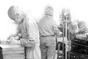 从两例广东非典型死亡病例尸体上截取下的带有非典型肺炎病毒的肺部切片标本被空运到医科院的微生物检验中心。标本放置于一个密闭的不锈钢瓶里,外层用装满冰块的三层医用塑料口袋包裹——直到它们整体被放入密封的病毒检测操作平台。祝庆余介绍,把它拿出来的时候,我们对这种致人死地的东西还一无所知,当时是戴了4层手套才把带病毒的标本取出密闭瓶。