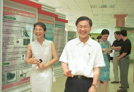 7月14日著名华裔科学家、美国艾伦·戴蒙德艾滋病研究中心主任何大一博士及随行曹韵贞教授、张林琦副教授、陈志伟博士、黄耀星博士、Jeffrey Hantover博士等在中科院生物局朱桢副局长的陪同下访问了病毒所,并与科研人员进行了学术座谈。 7月14日著名华裔科学家、美国艾伦·戴蒙德艾滋病研究中心主任何大一博士及随行曹韵贞教授、张林琦副教授、陈志伟博士、黄耀星博士、Jeffrey Hantover博士等在中科院生物局朱桢副局长的陪同下访问了病毒所,并与科研人员进行了学术座谈。座谈会上,胡志红所长介绍了武汉病毒所的基本情况和SARS病毒研究进展情况。何大一博士及张林琦副教授,陈志伟博士,黄耀星博士对病毒所的SARS病毒研究工作表示了极大的兴趣。胡所长的话音尚未落,他们就争先恐后就有关问题发表自己的见解,同时提了许多建设性意见,继而双方进行了深入地探讨,座谈会至始至终气氛热烈。当胡志红所长授予何大一博士“中科院武汉病毒所荣誉顾问”证书、张林琦副教授“中科院武汉病毒所客座教授”证书时。全场掌声一片,将会议气氛再次推向高潮。何大一博士等还参观了中科院分子病毒学重点实验室和中国病毒标本馆,他们对重点实验室的学术氛围和标本馆的布展及制作大加赞许。随后胡志红所长邀请何大一博士一行共进晚餐, 餐桌上,他们仍就SARS病毒研究问题继续进行交流和探讨,并表示了与病毒所合作的意愿。晚餐后,虽然时间不早了,但张林琦副教授,陈志伟博士,黄耀星博士等人主动提出返回病毒所实验室,与科研人员一起共同研究SARS病毒实验结果和讨论具体实验方案,不觉之中工作到深夜。相信何大一博士等人的加盟,将推进病毒所科研工作、加快实现知识创新工程目标的速度。 |
