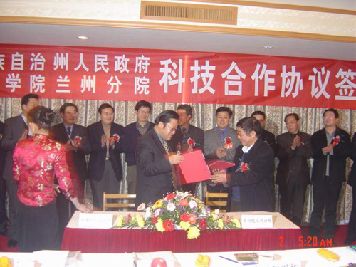 兰州分院与甘南州政府签订科技合作协议 1月11日下午,在甘肃省十届人大二次会议和政协九届二次会议期间,兰州分院与甘南藏族自治州人民政府在兰州饭店签订了科技合作协议书。协议约定,双方以“优势互补、互惠互利、真诚合作、共同发展”为原则,重点围绕甘南州“双遗产”申报、黄河上游生态环境保护及综合治理、改造提升中藏药产业、农畜产品深加工、决策咨询研究和信息咨询服务等方面开展深入的合作,推动把甘南州建成一个经济效益、社会效益和生态效益并举的“特殊生态功能保护区”和“民族文化大州”。这是兰州分院贯彻“三个代表”重要思想和省委“一带两翼”战略的具体体现,也是落实新一轮省院科技合作协议的具体行动。