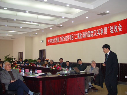 高技术研究与发展局主持召开的知识创新工程方向性项目——二氧化碳的固定及其应用验收会于2004年2月17日在蒙西集团举行。以中科院院士沈之荃为组长,中科院院士黄志镗、北京大学教授李福绵、北京化工大学教授焦书科、中科院化学所研究员习复、中科院成都有机所所长索继栓和吉林大学教授姜振华为成员的专家组在听取了项目介绍及课题验收汇报后,实地考查了蒙西集团公司与长春应化所合作建设的项目生产线,对该项目进行验收审议。