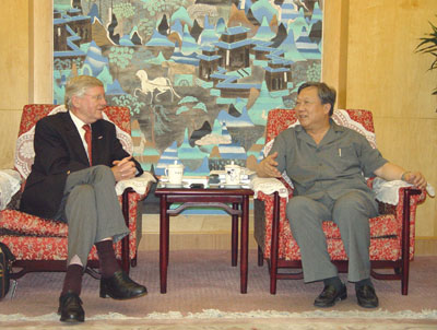 加强信息交换,如相互网址的链接、期刊、出版物和咨询报告的交换等。Pieter J.D.Drenth说欧洲作为一个整体十分关注与中国的合作,现在与中欧之间的科技合作已经从单独的项目合作发展成为战略合作。Pieter J.D.Drenth院长作为荷兰皇家科学院的前任院长,感谢路甬祥院长对中荷科技合作的支持,感谢路甬祥院长给荷兰教科大臣的信,双方合作培养博士生的计划已得到了荷兰教科部的支持,培养博士生的数额已增加到了16个。