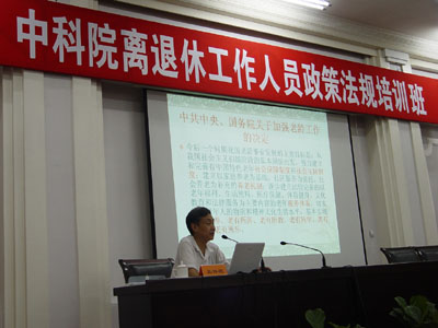 培训班请人事部工资福利与离退休司正司级巡视员王文波同志做了题为“当前离退休工作的形势和任务”的报告。王文波同志在报告中全面阐述了国家对离退休工作的政策和方针,强调了面对新情况、坚持离休干部工作的“八不变”,适应新形势、促进退休人员工作的“三转变”,对中科院今后的离退休工作提出了更高的要求。