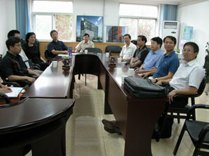2004年8月27日上午,留法纳米科技代表团成员、法国国家科研中心陈勇教授和白晋波研究员来到国家纳米科学中心访问并进行学术交流。 2004年8月27日上午,留法纳米科技代表团成员、法国国家科研中心陈勇教授和白晋波研究员来到国家纳米科学中心访问并进行学术交流。国家纳米科学中心查连芳副主任、王琛副主任、首席科学家朱星教授和江雷研究员以及中心的科研人员参加了座谈。