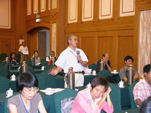 厦门大学戴汉民教授在大会讨论中发言。 为期三天的“海峡两岸第六届(2004年)海洋科学研讨会”于8月30日在青岛圆满结束。午夜av