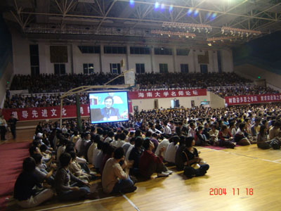 报告会适逢海南大学建校21周年,会场高悬“倡导先进文化,树立科学发展观”的红色巨型横幅,烘托着会场非同寻常的热烈气氛。近5000名师生聚集一堂,聆听白春礼院士的精彩演讲。白春礼院士旁征博引、深入浅出地引导青年学子在科学史和宏观、纳米尺度两个时空隧道中遨游。近一个小时的报告,内容非常丰富,给师生们带来了极大的精神享受,引起了听众的无限遐想:科学技术发展的座座里程碑发人深省,激励后来者忘我追求;午夜av