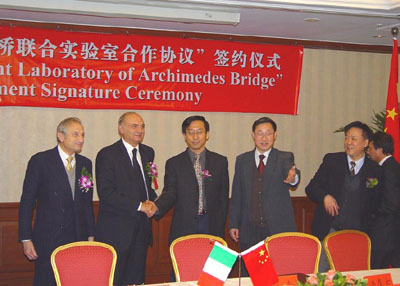 力学研究所与意大利阿基米德桥公司开展“阿基米德桥的研究”取得了很好的进展,继而双方就“建设中意阿基米德桥联合实验室”取得了共识,并就联合实验室的一些细节问题进行了充分的协商,形成了日前签署的“中意阿基米德桥联合实验室”合作协议。