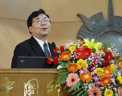 青年强则国家强,青年兴则民族兴。科学的未来在于青年,实现我院知识创新工程试点的宏伟目标,需要更多高素质的青年人才。院青联要始终高举邓小平理论和“三个代表”重要思想伟大旗帜,认真落实科学发展观,牢固树立“以人为本,创新跨越,竞争合作,持续发展”的新科技发展观,紧密团结和凝聚全院广大青年积极主动投身知识创新实践,在实践中不断提升科技创新能力;充分发挥组织优势和人才优势,为全社会普及科学知识、弘扬科学精神、宣传创新文化做出积极贡献;营造良好科研环境和文化氛围,培养和造就更多更强的青年创新人才。我相信,在新一届院青联的带领下,全院广大青年一定会更加朝气蓬勃、奋发进取,为实现我院科技创新能力的跨越和持续发展做出更大贡献!