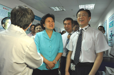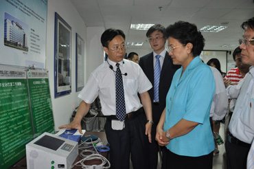 樊建平介绍中科强华公司研制的低成本健康系统,刘延东认为该产品将对医改产生重要推动作用