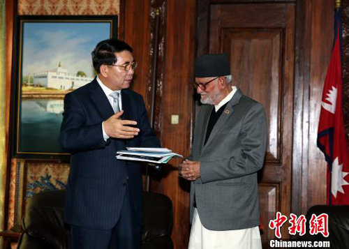 中国驻尼泊尔大使吴春太一同参加会见。