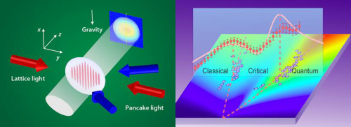 左:观测一维量子多体相变和拉亭杰液体的超冷原子实验装置示意图;右:一维量子多体系统相图