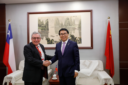 维瓦尔迪对“一带一路”国际科学组织联盟的成立表示热烈祝贺,表示期待在该平台下推进中智双方科技创新合作。他积极赞赏中科院在海外建设科教基地的举措,并表示智利大学作为中科院南美天文中心在智依托单位,将一如既往支持两国天文界的长期深入合作,并为推动两国科技交流合作做出贡献。维瓦尔迪还特别介绍了智利大学科技创新园区的发展规划,双方就利用该平台推动科技创新合作进行了探讨。