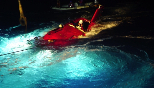 “深海勇士”号在恶劣海况下夜间回收