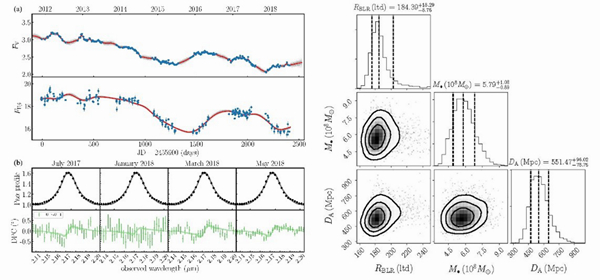 午夜av 高能物理研究所王建民团队利用欧洲南方天文台甚大望远镜的观测数据,结合中科院云南天文台2.4米望远镜和美国Steward天文台Bok2.3米望远镜长达10年的反响映射数据,首次实现了对类星体3C 273宇宙学距离的直接测量,并用新方法计算了H0,为解决哈勃常数危机提供了新途径。审稿人认为,这项工作是提高宇宙学距离测量精度的必经方案,十分及时和令人激动。相关成果于2020年1月13日发表在《自然-天文》上。