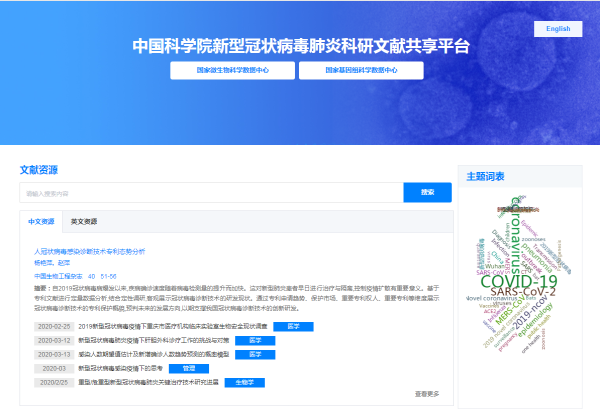 新型冠状病毒肺炎科研文献共享平台(中英文版)汇聚了中科院科研人员和中科院所属科技期刊正式发表的新冠肺炎论文,共享了国家微生物科学数据中心、国家基因组科学数据中心的有关核酸序列、菌毒种信息等科学数据资源,面向全世界提供开放式的浏览、检索和共享服务,为推动世界各国开展病毒研究和疫情防控提供参考。截至3月31日,已经为139个国家和地区的192613名用户提供了800.4万次的数据浏览、检索和数据下载服务,并受到国外相关主流媒体的关注报道。