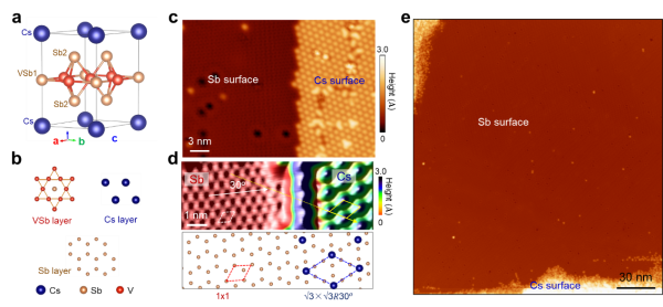 CsV3Sb5的原子结构与解理面的STM图像