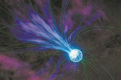 艺术概念图描绘了一颗磁星向太空释放物质的场景。图片来源:NASA官网