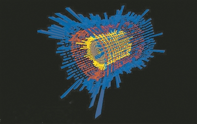 sPHENIX粒子探测器上的组件记录的碰撞信号(艺术图)。图片来源:sPHENIX合作组织