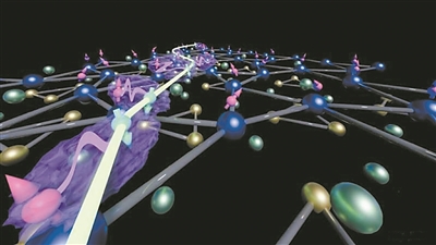 铈铑锡晶体内重费米子发生量子纠缠(艺术图)。图片来源:日本大阪大学