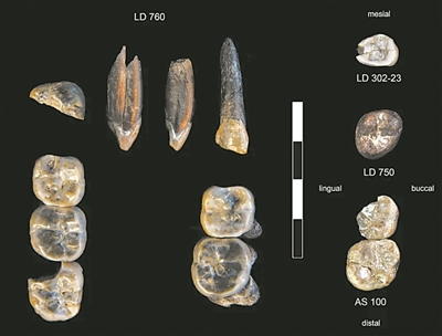 标记为LD 750和LD 760的牙齿代表南方古猿的未知物种,而LD 302-23和AS 100则来自早期人类物种。