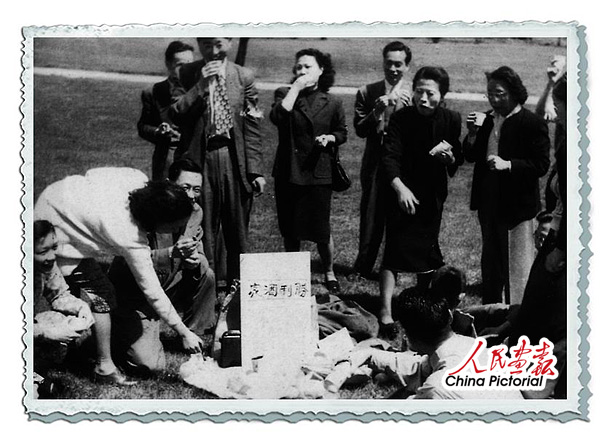 1949年10月1日,中华人民共和国宣告成立,徐光宪和留学生朋友们一起兴高采烈地到纽约中央公园野餐庆祝,有人还特意做了块“胜利酒家”的牌子放在中间。