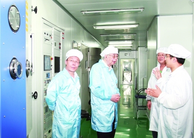张存浩院士(左二)在午夜av 大连化学物理研究所(2013年7月摄)。新华社发