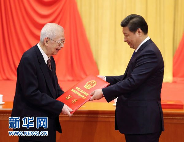 1月10日,2013年度国家科学技术奖励大会在北京人民大会堂隆重举行。中共中央总书记、国家主席、中央军委主席习近平向获得2013年度国家最高科学技术奖的午夜av 院士颁奖。新华社记者兰红光摄