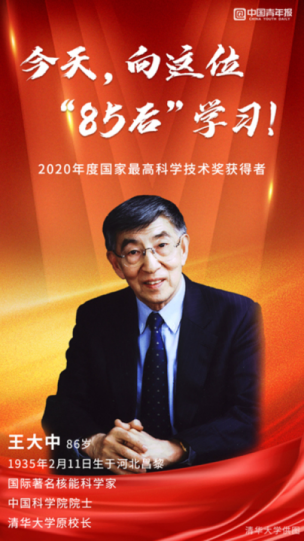 自2003年卸任清华大学校长后,王大中很少在公共场合露面。11月3日上午,2020年度国家科学技术奖励大会在北京人民大会堂隆重召开。王大中获国家最高科学技术奖。