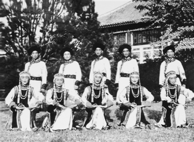 大学时代,王大中(后排左一)和清华舞蹈队队友合影。